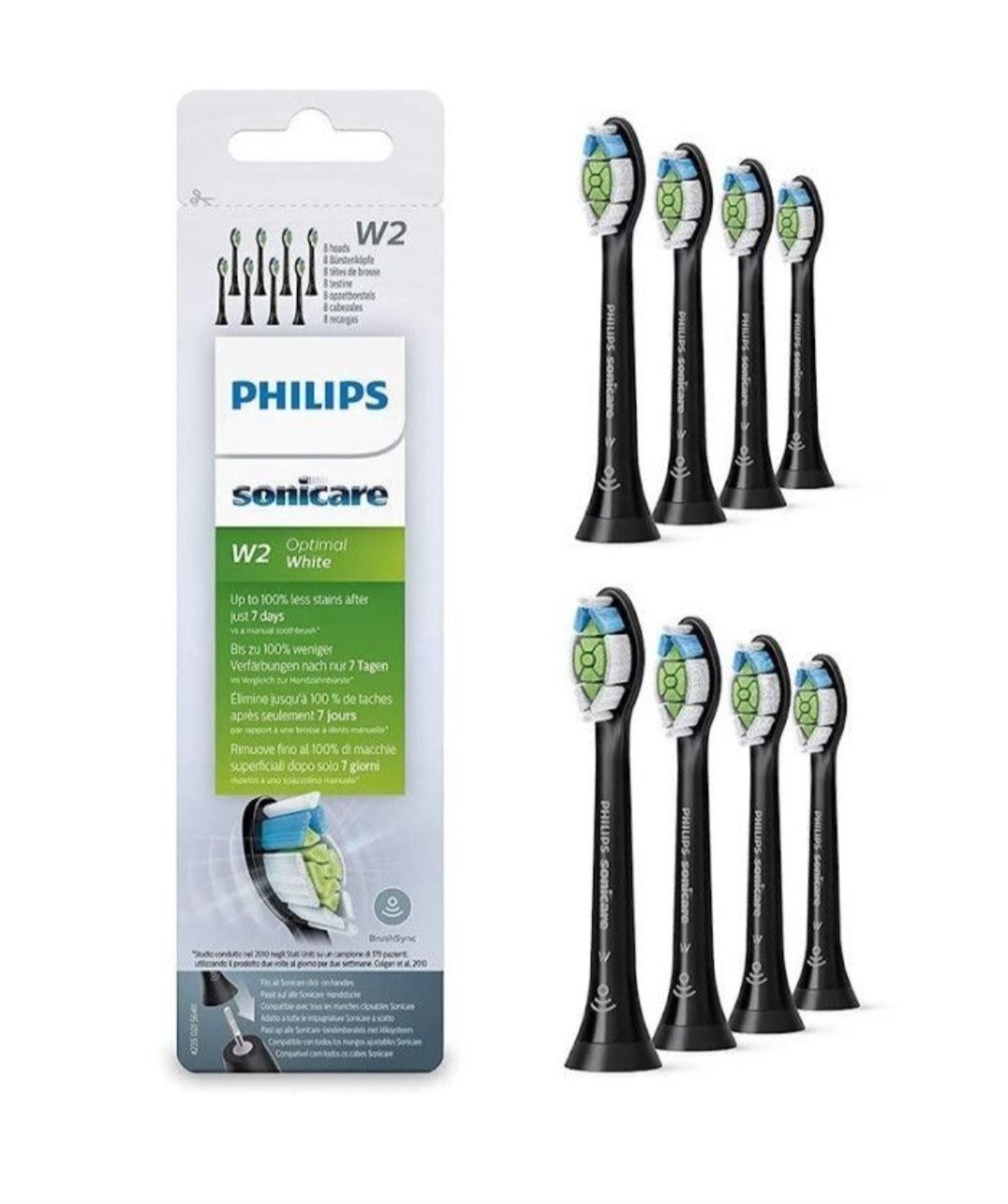 適合任何飛利浦Sonicare電動牙刷 與手動牙刷相比,潔白的牙齒可去除多達100%的變色 硬毛硬度:中等。 獲得專利的製造工藝,使刷毛更緻密且無細菌腔 包裝盒內含:一包8個(以前稱為DiamondClean牙刷頭)
