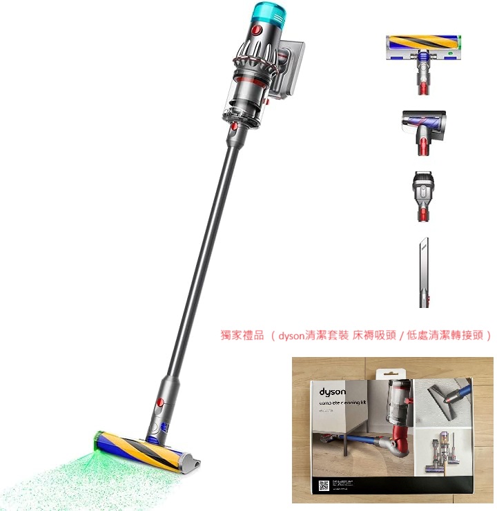 此型號配備 Dyson 獨有嘅 Laser Slim Fluffy™ 清潔頭,能透過綠色激光照亮肉眼難以察覺嘅微塵,有效提升清潔精準度。內置 壓電感應器 可偵測吸入嘅灰塵量並即時喺 LCD 螢幕上顯示,更會根據地面髒污自動調節吸力。