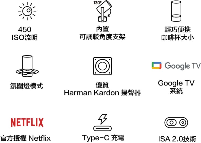 亮度 : 450 ISO 流明